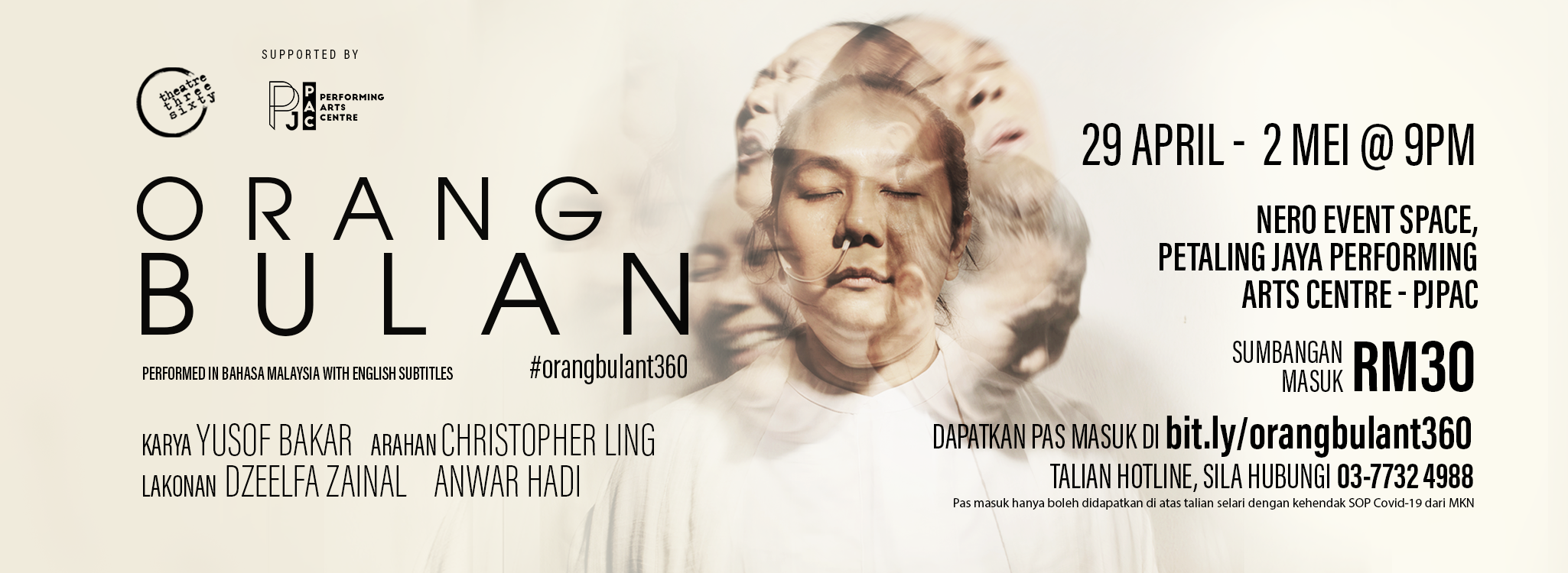 Established in March 2014, theatrethreesixty‘s productions have been seen all over Malaysia and Singapore, having been featured at the Kota Kinabalu Arts Festival, the What About Kuching arts festival, the Kakiseni International Arts Festival, The Other Festival Ipoh, Festival Belia Putrajaya, Gerak Angin Virtual Arts Festival and the Causeway Exchange Festival, Singapore.